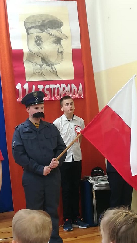 8 listopada włączyliśmy się w obchody uroczystości Odzyskania Niepodległości. Uczniowie klas V-VIII pod kierunkiem Pani Wioli przygotowali przedstawienie przypominające historię naszego państwa i drogę do Niepodległości.