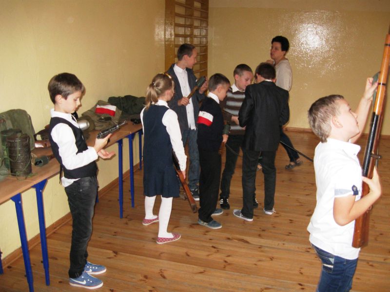 W naszej szkole jak co roku obchodzimy ten szczególny dzień bardzo uroczyście. Uczniowie klas IV-VI pod kierunkiem pani Wiolety Przybyszewskiej przygotowali akademię. Śpiewano żołnierskie piosenki takie jak: „Rota”, „Rozkwitały pąki białych róż”, „Przybyli ułani pod okienko”, „Wojenko, wojenko” oraz „Warszawianka”, recytowano wiersze znanych polskich poetów mówiące o trudach codzienności w tamtych odległych już czasach. Po zakończeniu uroczystości uczniowie mogli obejrzeć wystawę akcesorii wojskowych takich jak: karabiny, pistolety, menażki, manierki, żołnierskie mundury, płaszcze, latarki, granaty, opaski biało-czerwone, czapki z orzełkiem, plecaki. Rekwizyty te cieszyły się dużym zainteresowaniem wśród uczniów, mogli oni ich dotykać, przymierzać i poczuć wagę karabinów. Przez chwilę poczuli atmosferę tamtego okresu, zrozumieli jak ważne jest to, by móc żyć w wolnym kraju, w którym panuje pokój i radość.