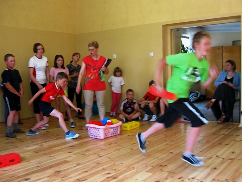 Główną częścią festynu były zawody sportowe. W 10 konkurencjach o charakterze ogólnorozwojowym rywalizowało 25 uczniów. Były biegi, skoki, rzuty do celu. Uczniowie byli bardzo zaangażowani w rywalizację, wszyscy starali się wykonać ćwiczenia jak najlepiej i jak najszybciej.